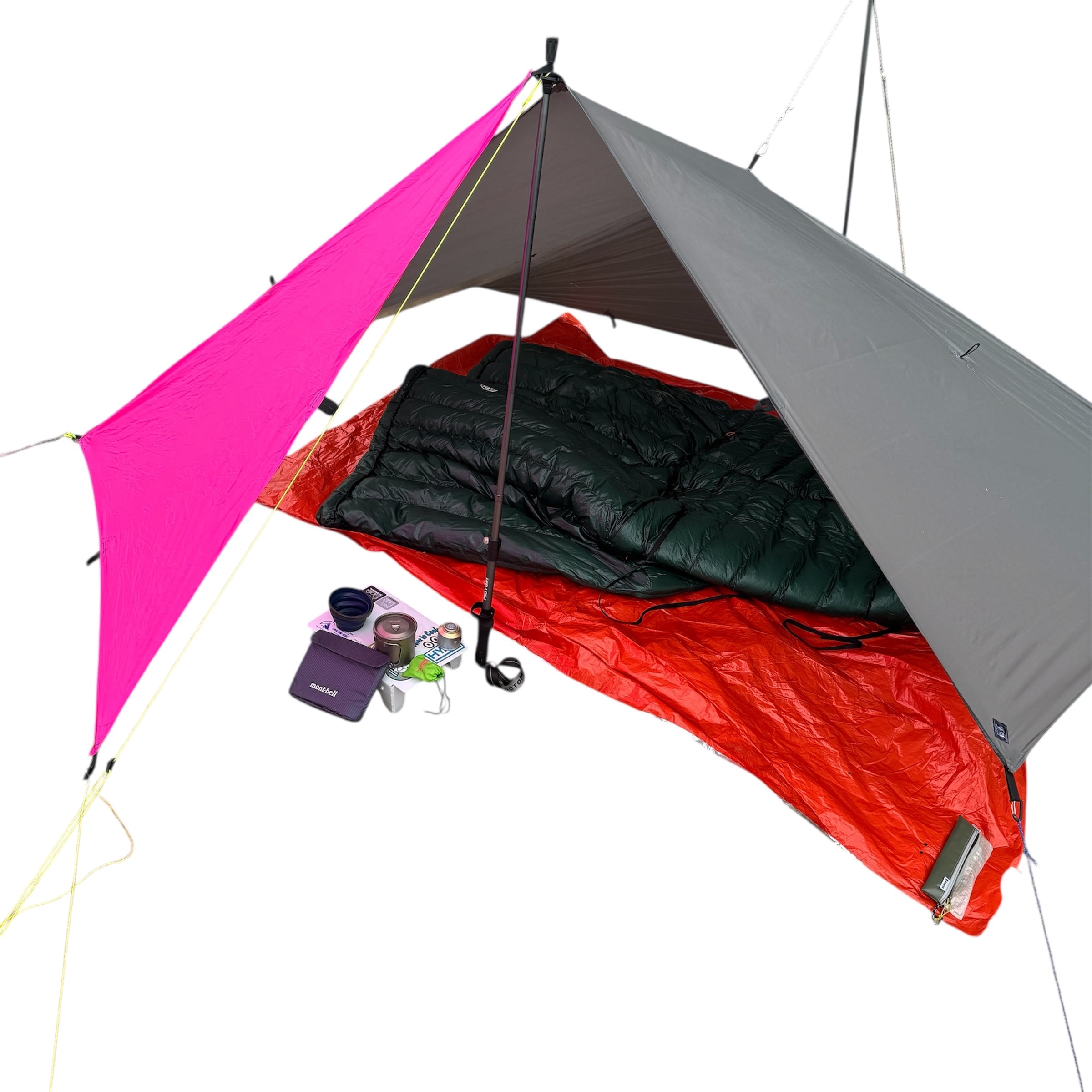 シンプルでスタイリッシュなUL SIM solo tarpは、アウトドア愛好者のために設計された超軽量素材の防水タープです。