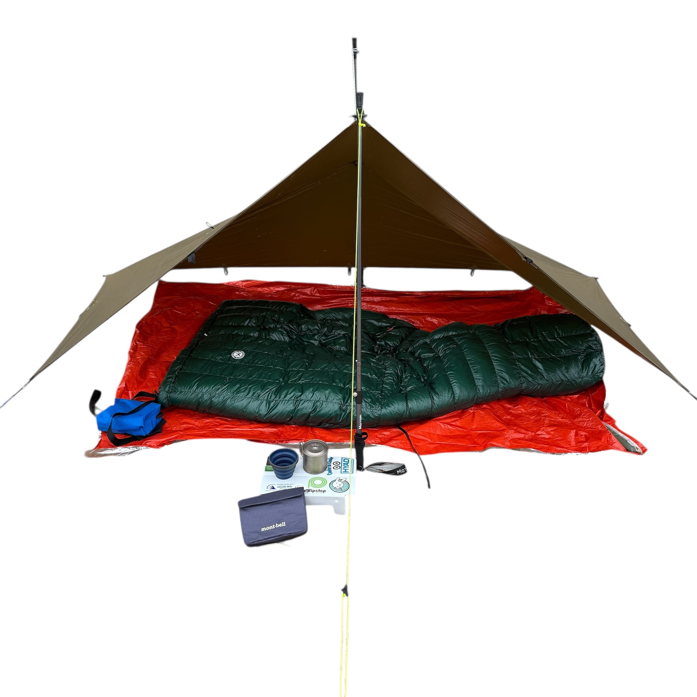トレッキングポールやソロ用のポールとガイロープがあればすぐにでもULなタープ泊をする事ができます。