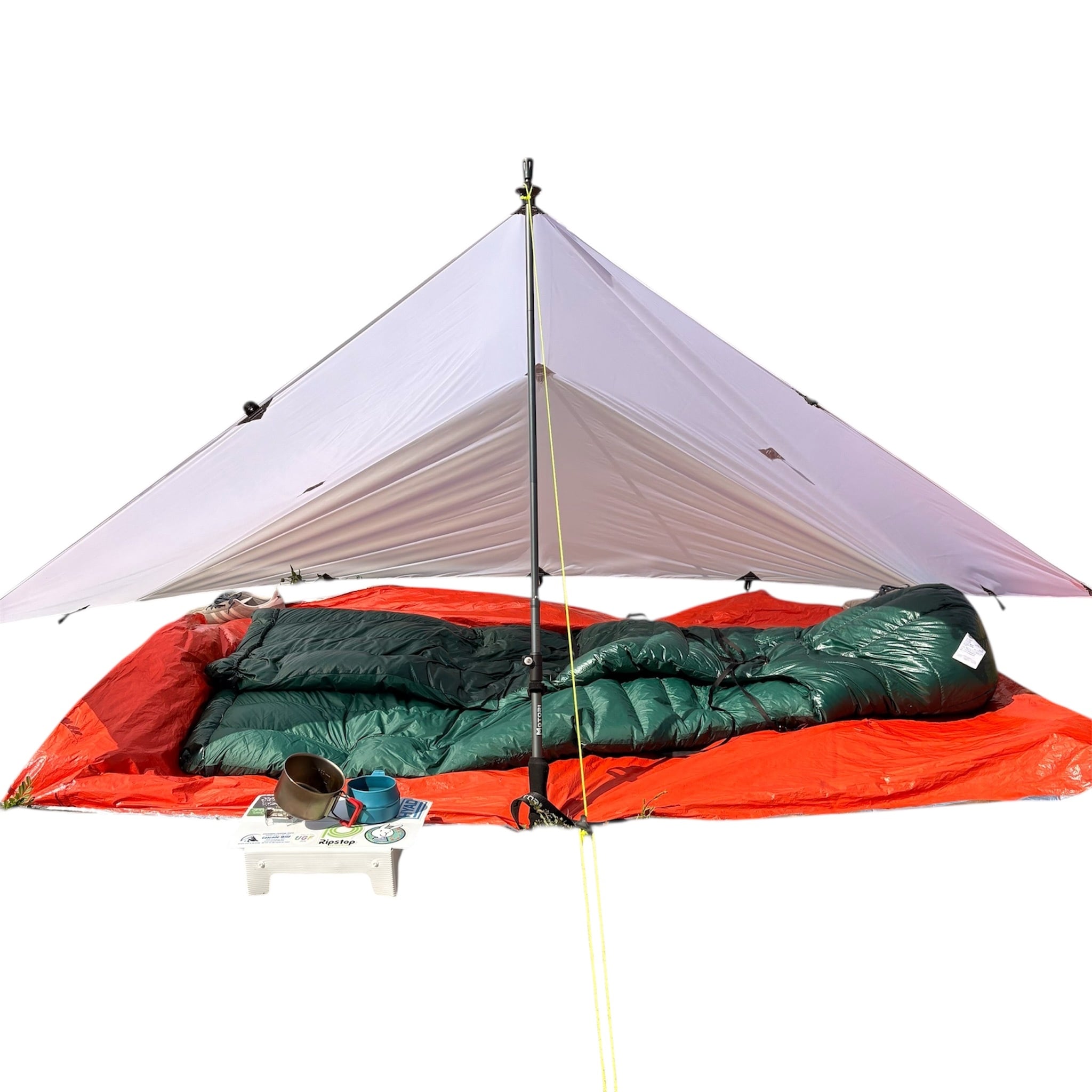 シンプルでスタイリッシュなUL SIM solo tarpは、アウトドア愛好者のために設計された超軽量素材の防水タープです。